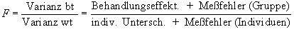 Bei Unterschieden innerhalb einer Gruppe fällt dagegen die erste Erklärungsmöglichkeit weg. Der F-Bruch gibt also Auskunft über die Größe des Treatment-Effekts: