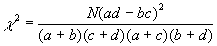 Die Kleinbuchstaben a, b, c und d repräsentieren die Häufigkeiten in den einzelnen Zellen. Der Wert für c 2 läßt sich dann auf folgende Art bestimmen: